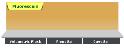 Click on the volumetric flask containing the fluorescein solution to take it onto the instrument table.